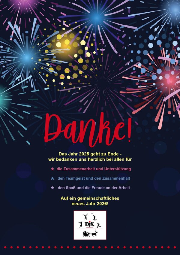 Für das Jahr 2026 wünschen wir Euch und Euren Familien Gesundheit, Glück, Zuversicht, sportliche Erfolge und viele schöne gemeinsame Momente in und mit unserer DJK Sümmern.